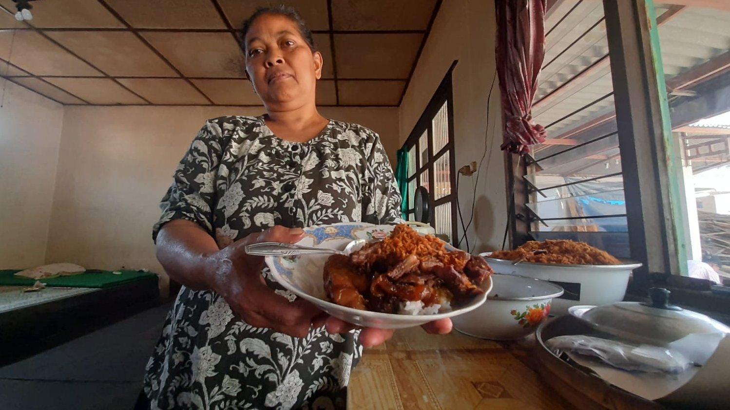 “Ibu memang dari dulu jualannya di sini, di rumah. Ruang tamu jadi tempat makan, sampingnya langsung pawon (dapur Jawa),” ujarnya, saat ditemui di warungnya belum lama ini.