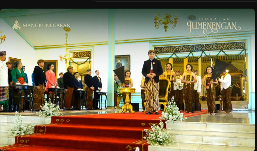 Riwara.id – Hari ini Selasa 27 Januari 2026 diadakan Tingalan Jumenengan ke 4 Mangkunegara X yang tampak dihadiri sejumlah tokoh penting mulai dari politisi, Wapres Gibran Rakabuming beserta istri dan tampak pula hadir Pakubuwono XIV Mangkubumi bersama Ketua Lembaga Dewan Adat Keraton Surakarta Gusti Moeng tampak menghadiri acara sakral Tingalan Jumenengan yang di gelar di Pendapa Ageng Pura Mangkunegaran.